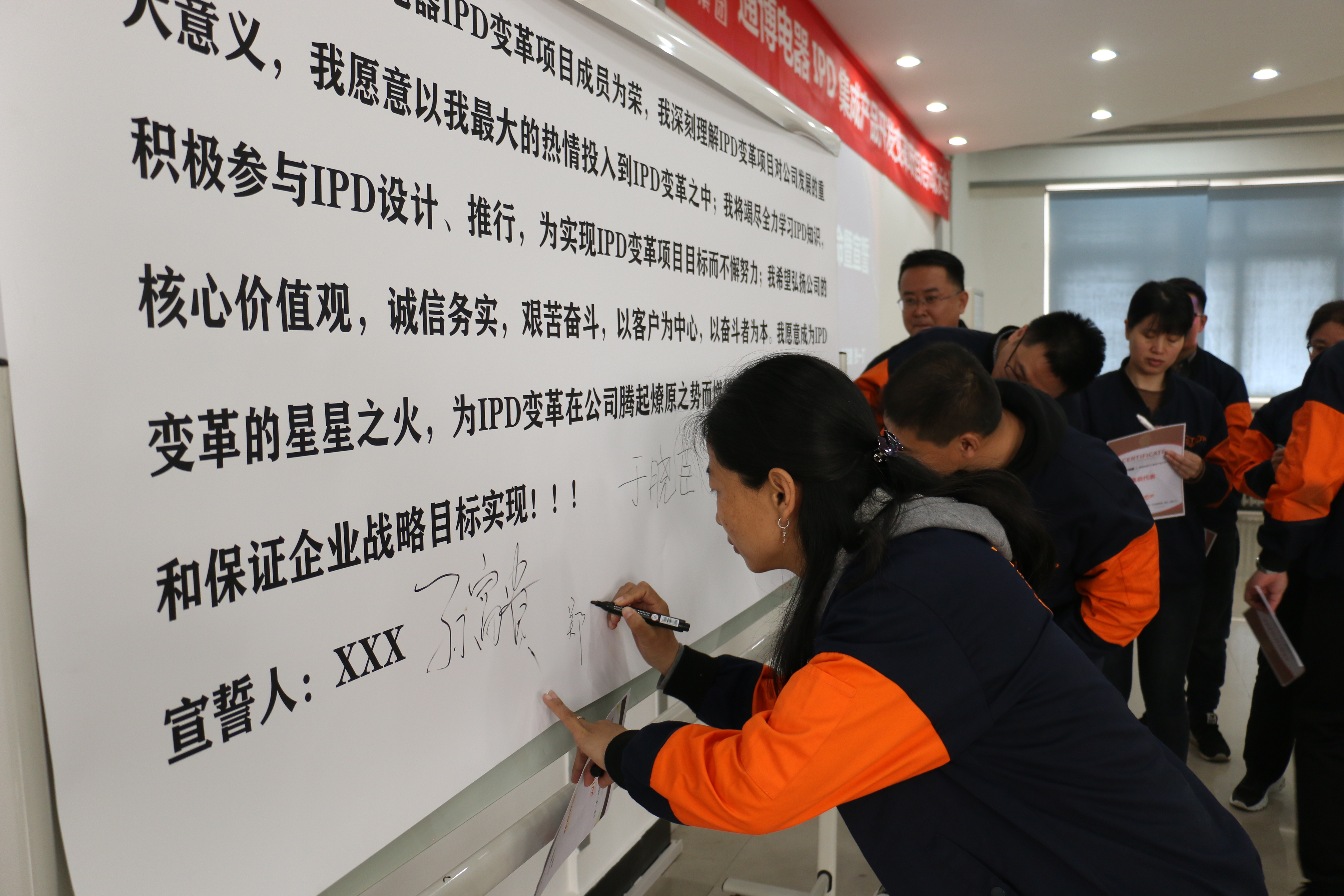 儀式上,總經(jīng)理張一丁女士宣布了通博電器IPD集成產(chǎn)品開發(fā)變革項目的委員會成員和項目組人員任命,所有成員確認各自的職責,并宣誓,誓言是對自己承擔責任和義務(wù)的明確,也表明企業(yè)在IPD項目實現(xiàn)上的決心和堅定。