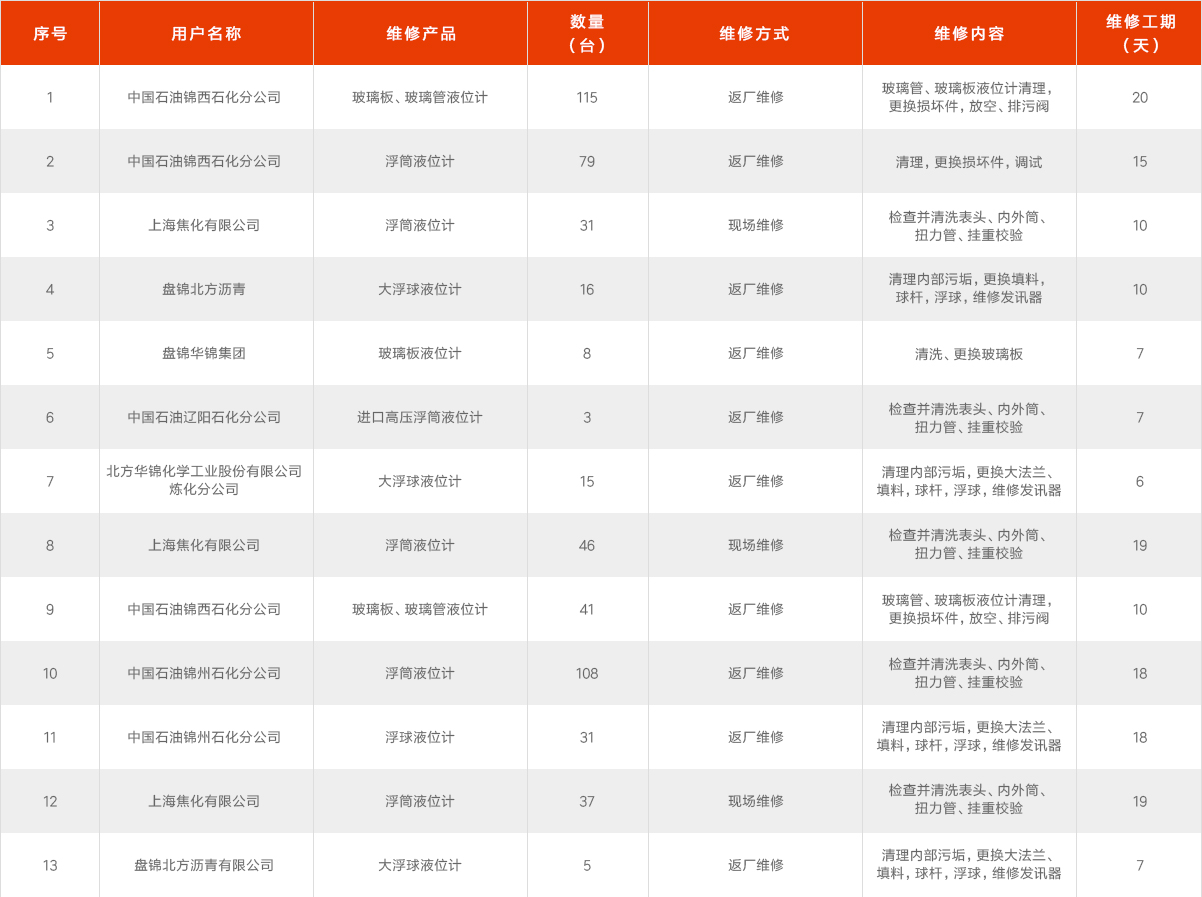 業(yè)績(部分檢維修服務統(tǒng)計)