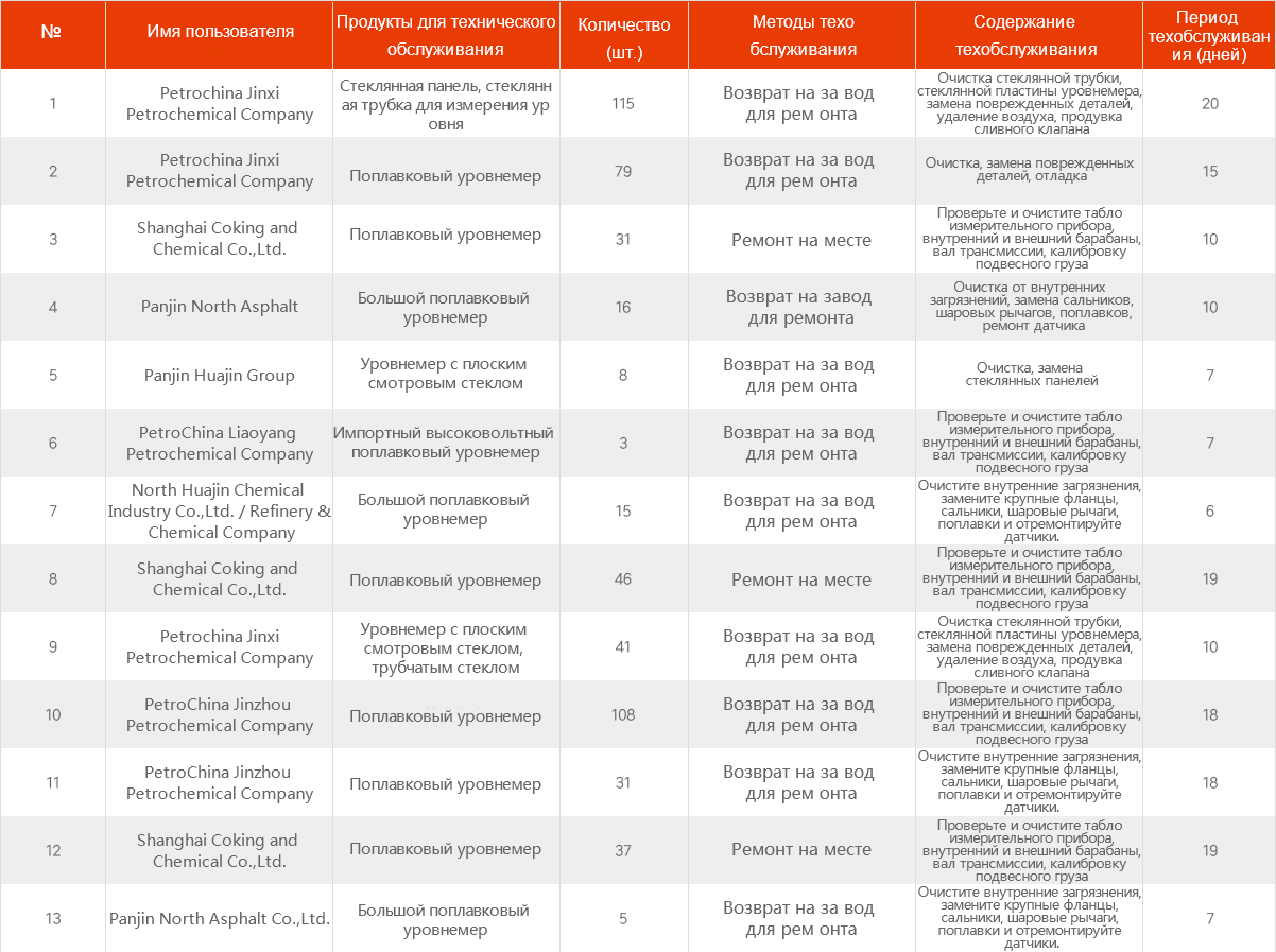 • Специализированные инженеры по обслуживанию контрольно-измерительных приборов на местах (12 человек)